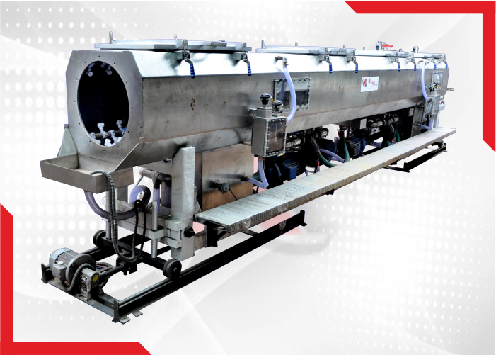 • Dual vacuum tank provided on common / individual structure for dual pipe extrusion.